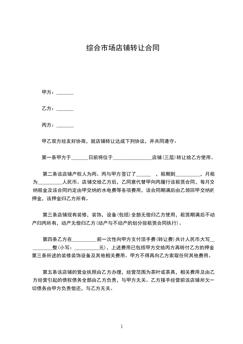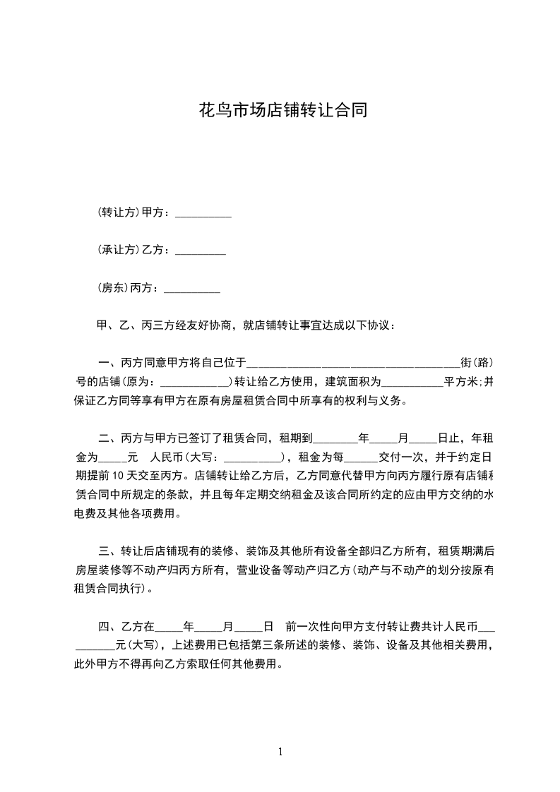 第一条甲方于_______日前将位于________________店铺(三层)转让给乙方使用。
