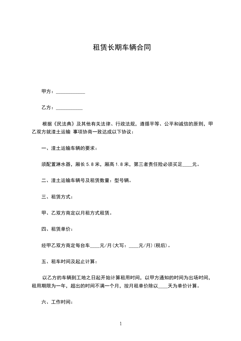 经甲乙双方商定每台车____元/月(大写:____元/月)(税后)。