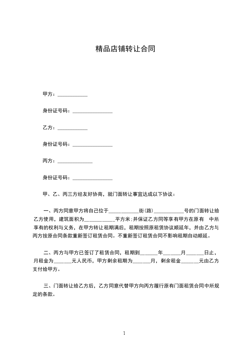 甲、乙、丙三方经友好协商,就门面转让事宜达成以下协议: