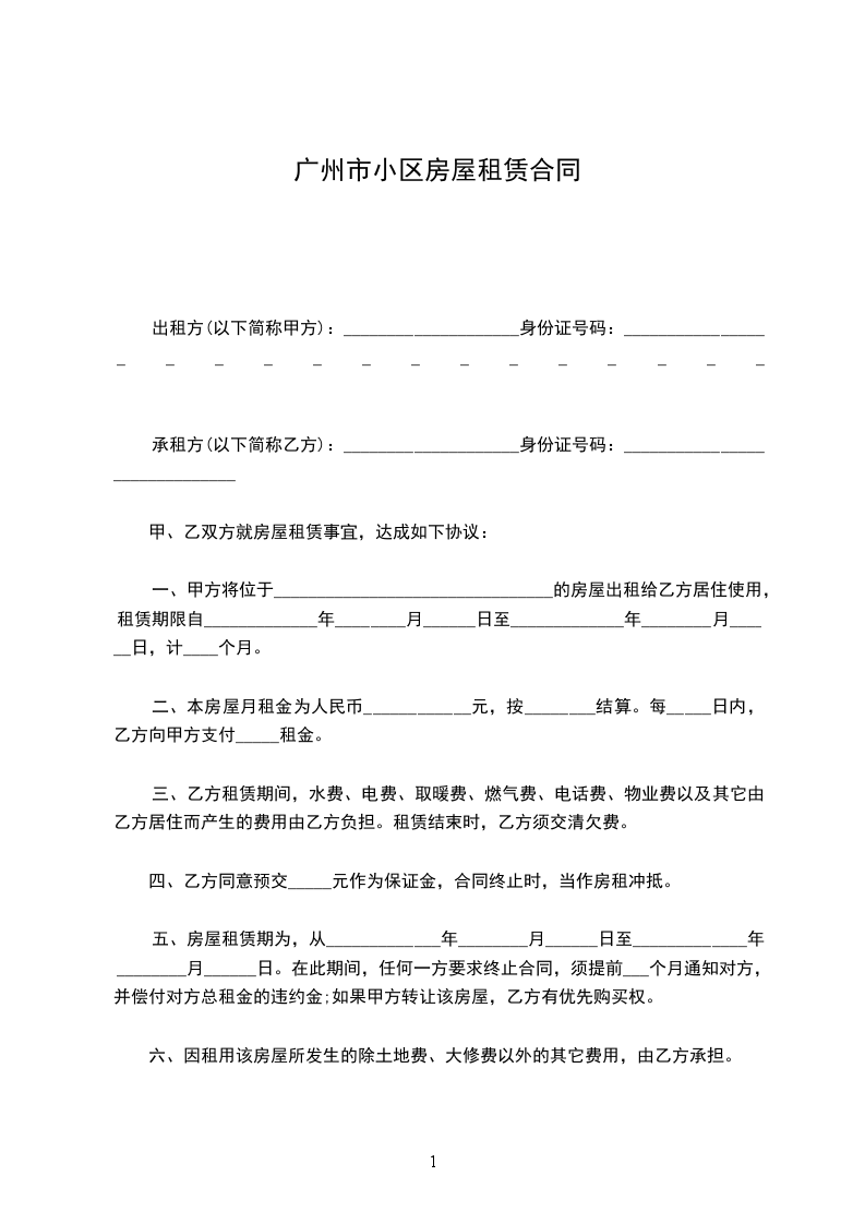 出租方(以下简称甲方):____________________身份证号码:______________________________