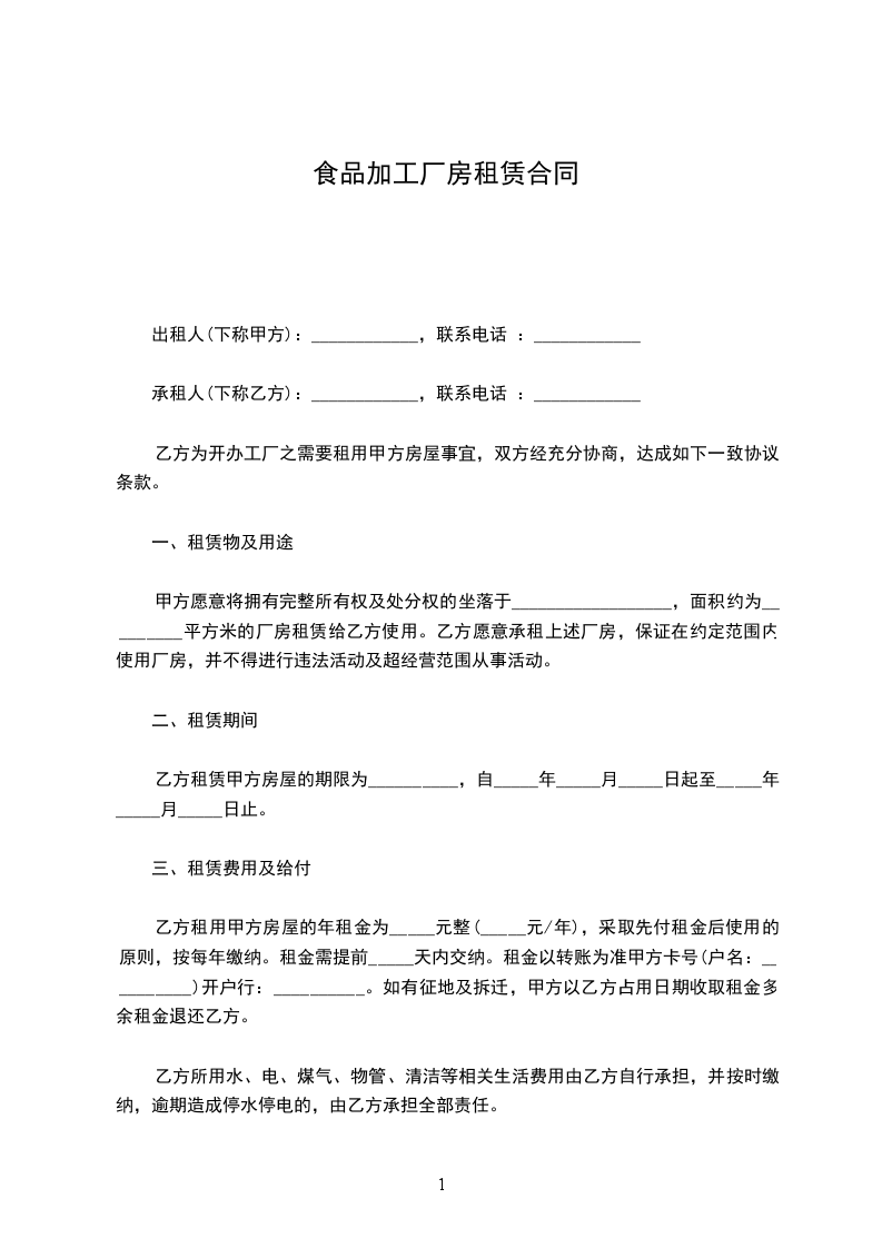 甲方愿意将拥有完整所有权及处分权的坐落于__________________,面积约为_________平方米的厂房租赁给乙方使用。乙方愿意承租上述厂房,保证在约定范围内使用厂房,并不得进行违法活动及超经营范围从事活动。