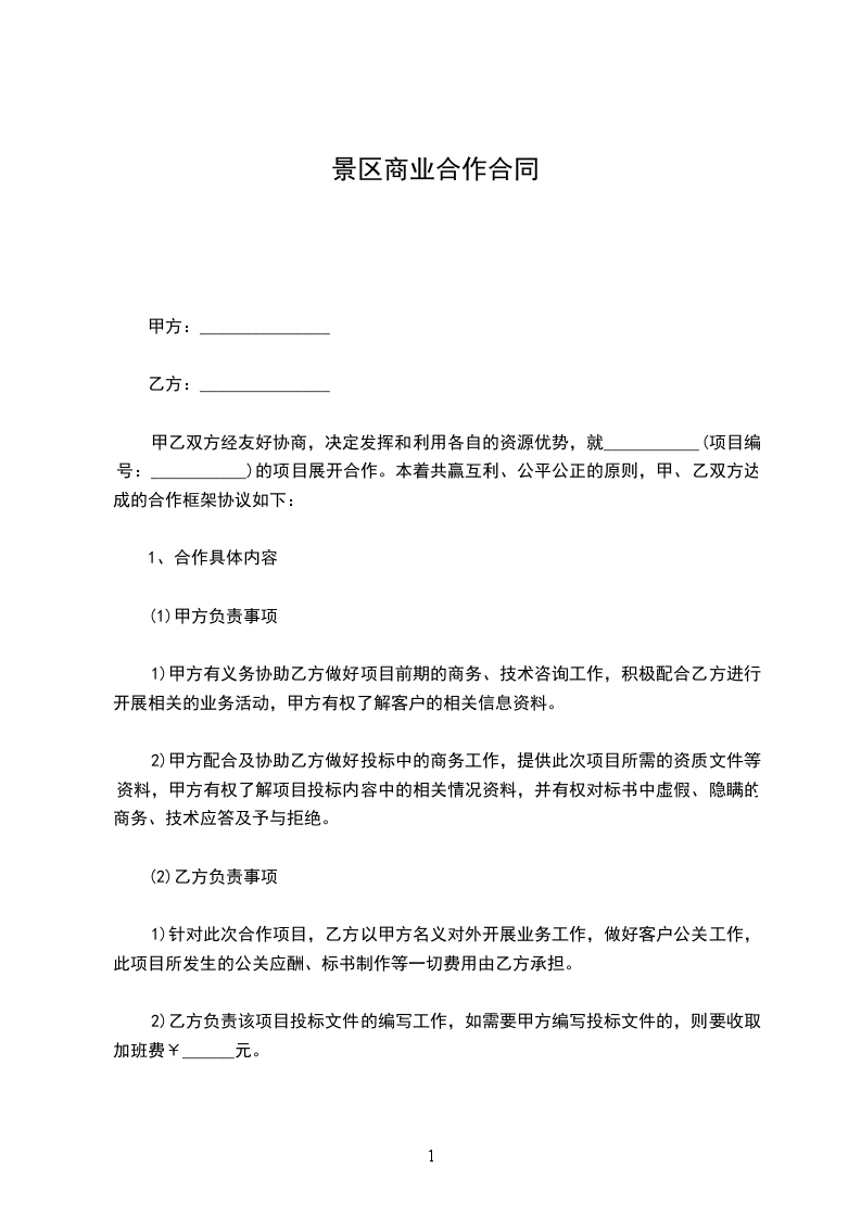 甲乙双方经友好协商,决定发挥和利用各自的资源优势,就___________(项目编号:___________)的项目展开合作。本着共赢互利、公平公正的原则,甲、乙双方达成的合作框架协议如下: