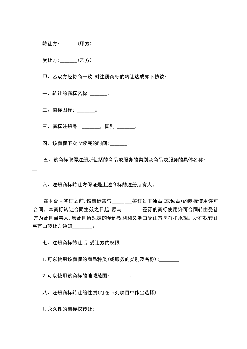 2)、在本合同签订之日,转让人把注册商标有关证件交给受让人;由受让人办理有关注册商标转让手续及缴纳有关费用,经国家商标局核准后,该注册商标权正式归受让人所有。