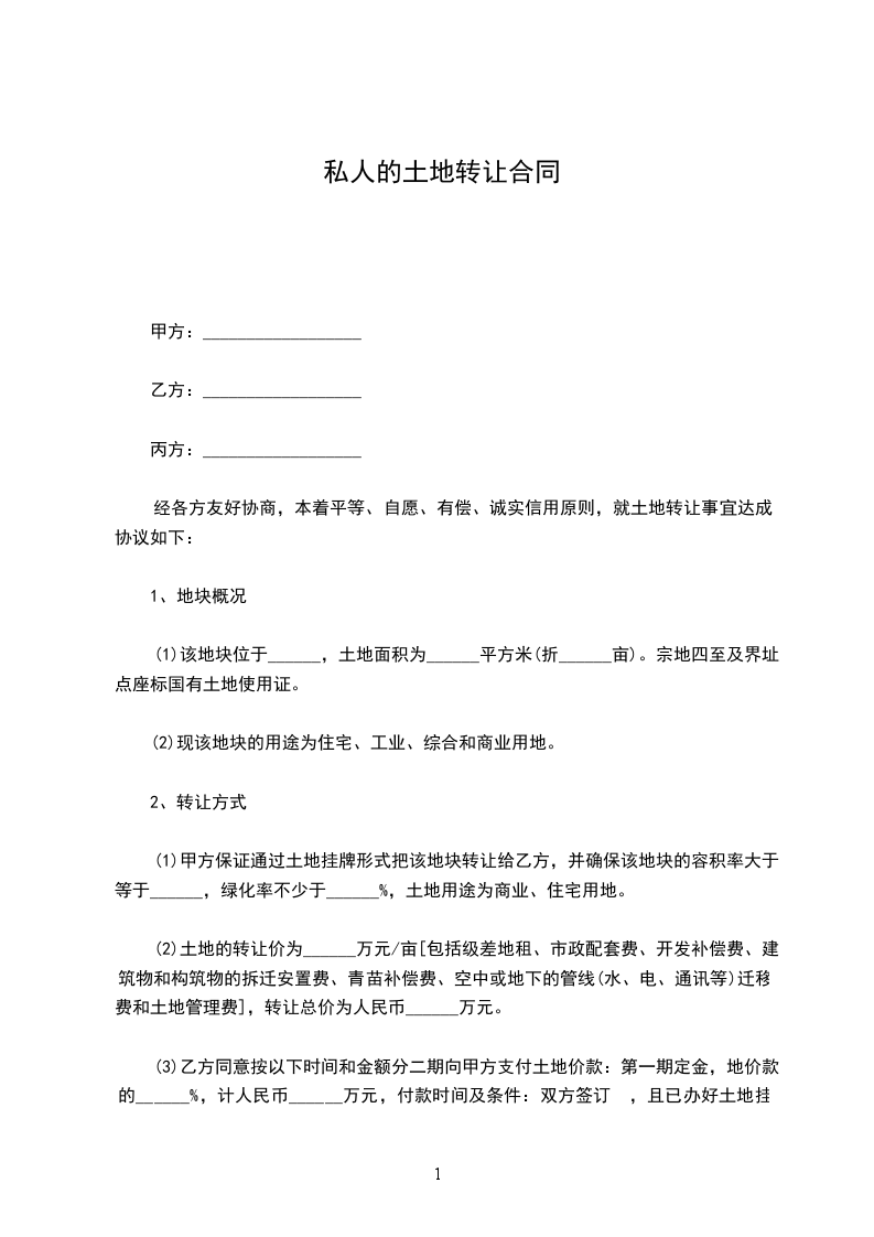 经各方友好协商,本着平等、自愿、有偿、诚实信用原则,就土地转让事宜达成协议如下: