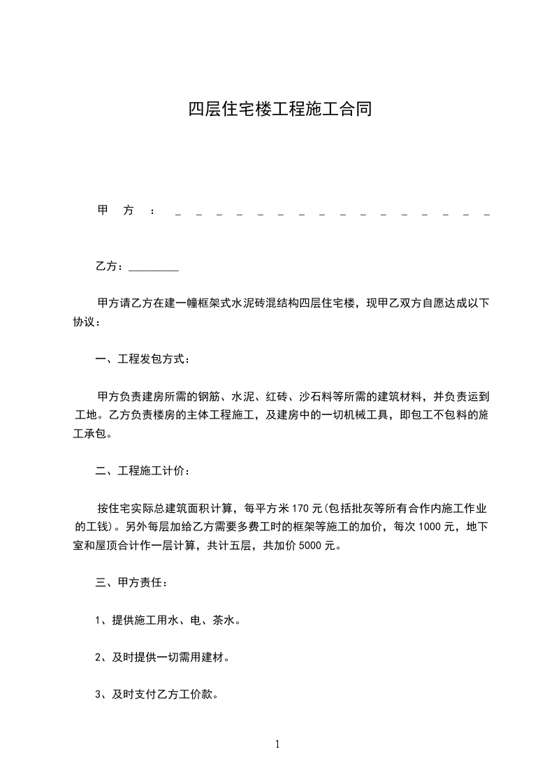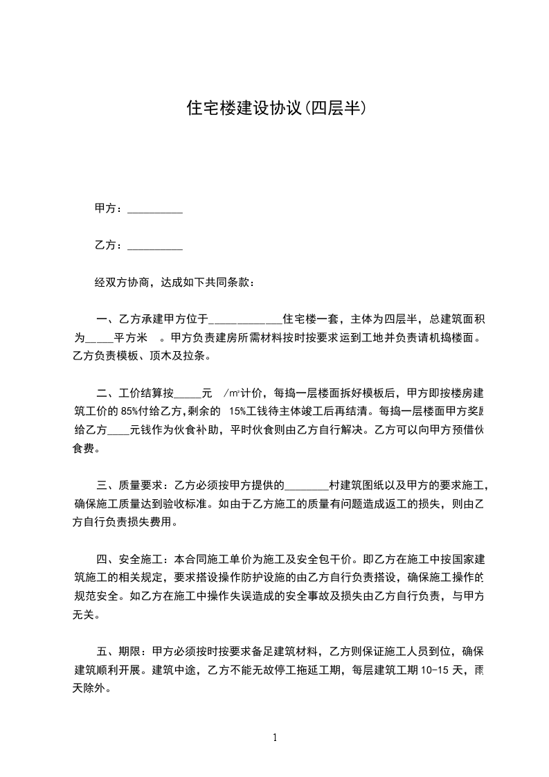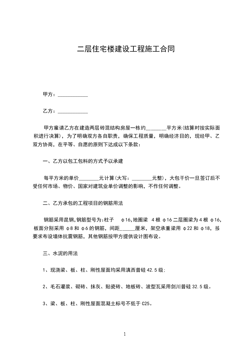 甲方雇请乙方在建造两层砖混结构房屋一栋约________平方米(结算时按实际面积进行决算),为了明确双方各自职责,确保工程质量,明确经济目的,现经甲、乙双方协商,在平等、自愿的原则下达成以下条款: