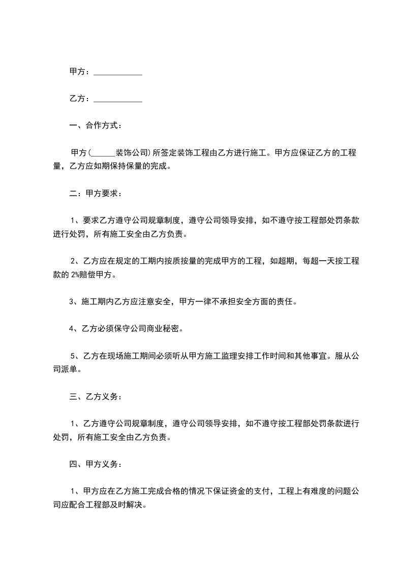 1、开工划线时由 甲方预付乙方材料费______万元整;