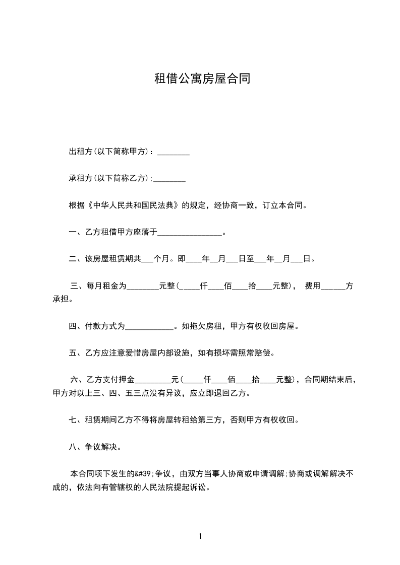 一、 乙方租借甲方座落于___ 约计___ 房屋。
