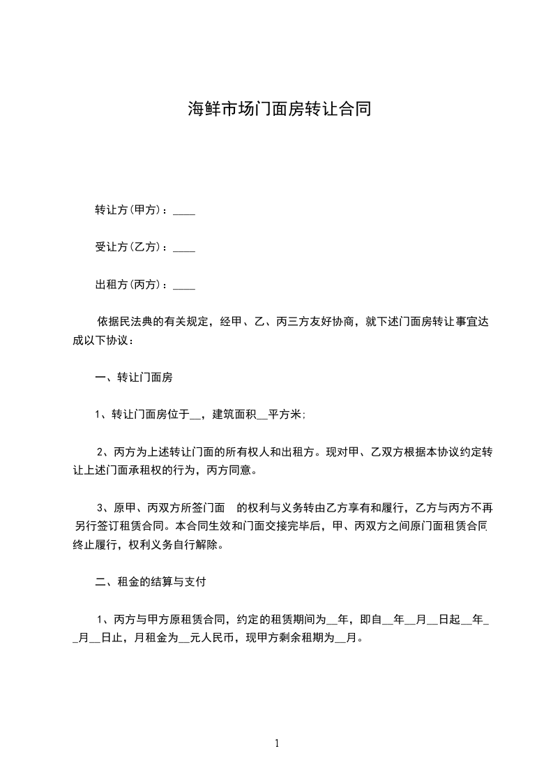 依据民法典的有关规定,经甲、乙、丙三方友好协商,就下述门面房转让事宜达成以下协议: