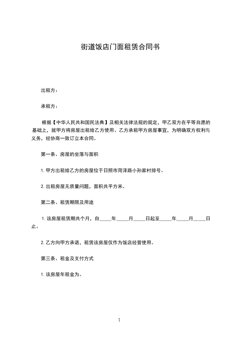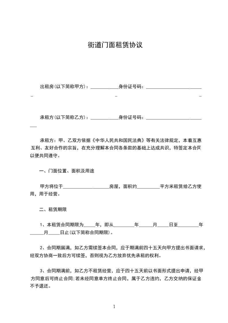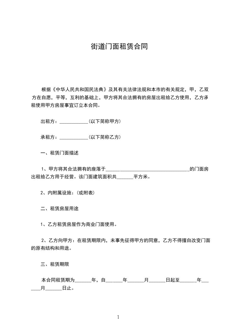 一、甲方将座落于县城_中路汽车站运达商场靠车站东大门一间面积为_____平方米的临街门面租赁给乙方,作_使用。