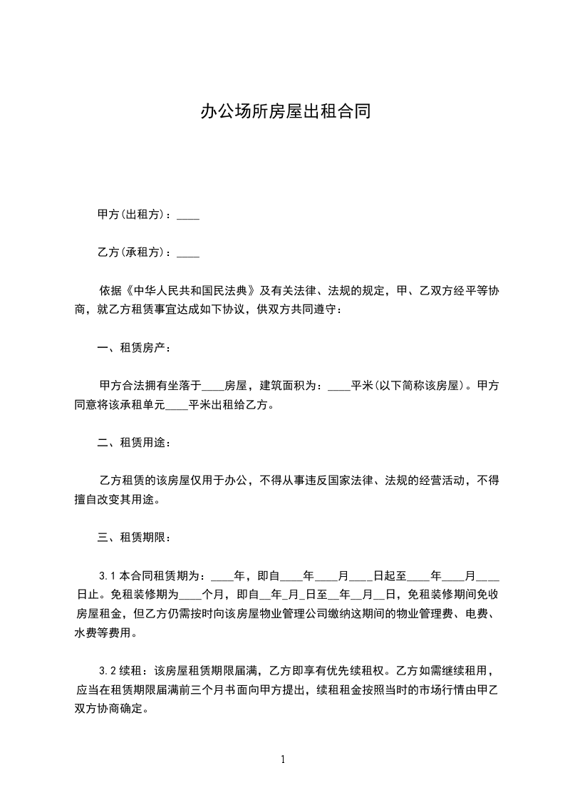 3.1本合同租赁期为:____年,即自____年____月____日起至____年____月____日止。免租装修期为____个月,即自__年_月_日至__年__月__日,免租装修期间免收房屋租金,但乙方仍需按时向该房屋物业管理公司缴纳这期间的物业管理费、电费、水费等费用。