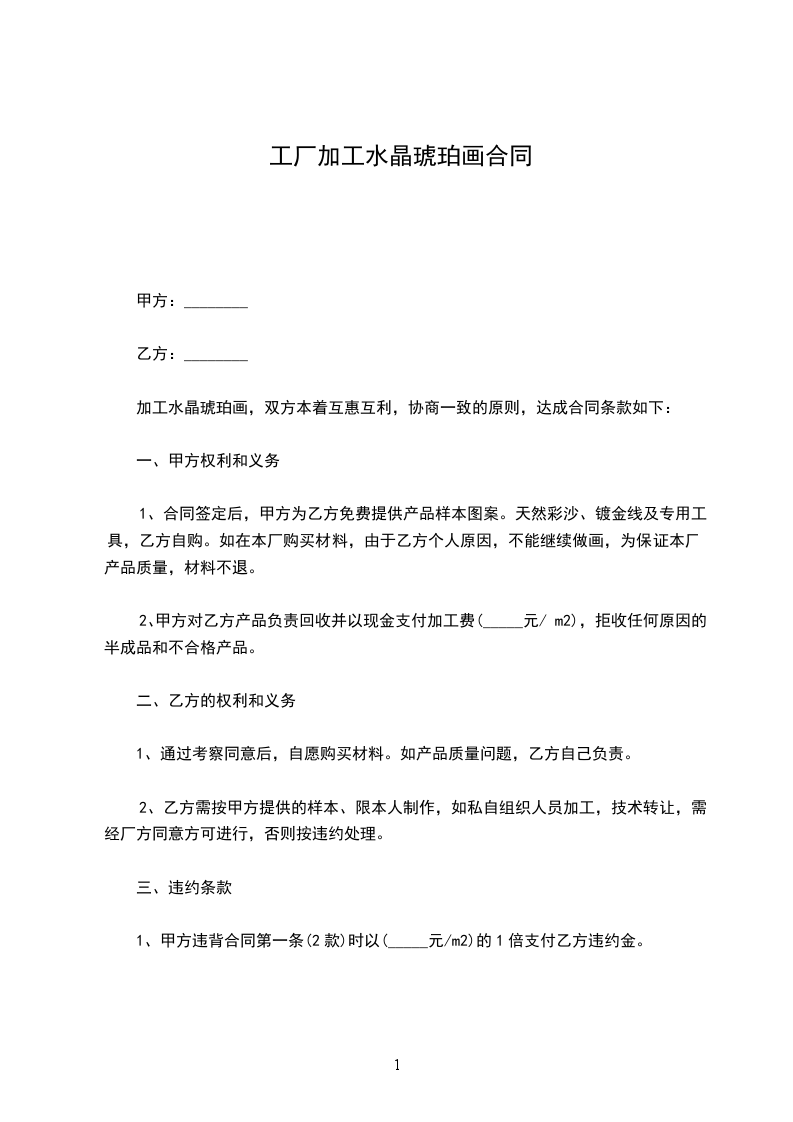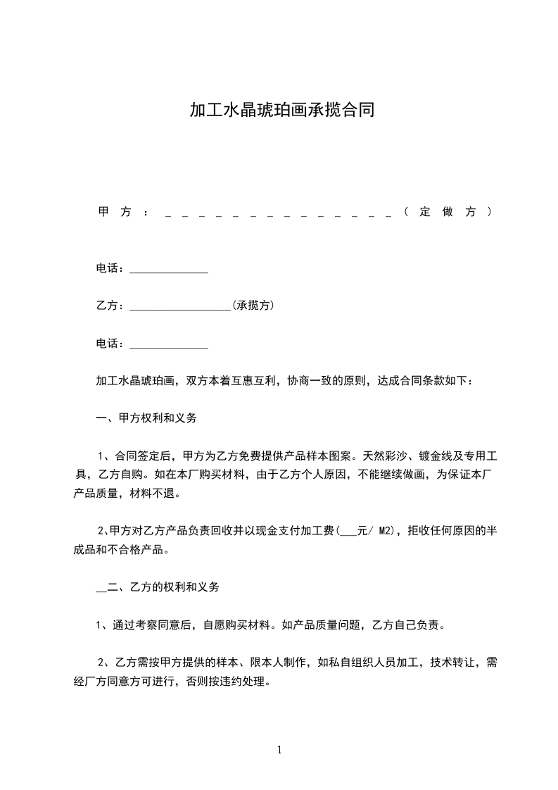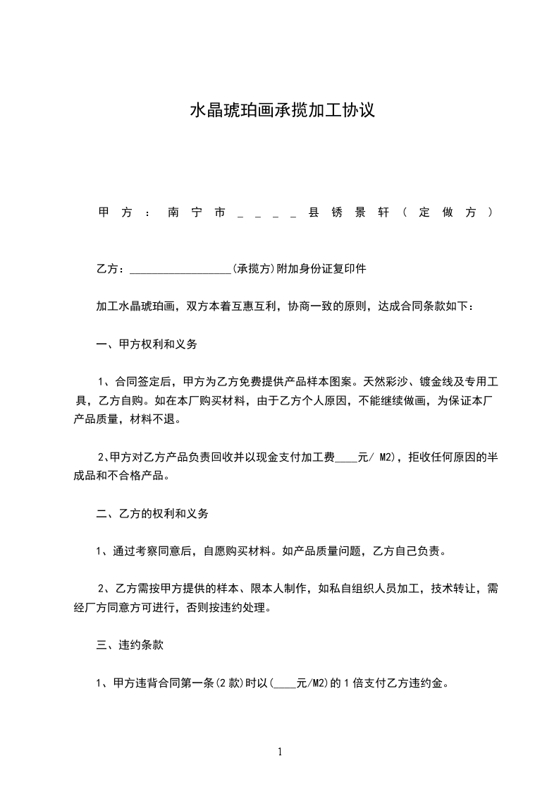 加工水晶琥珀画,双方本着互惠互利,协商一致的原则,达成合同条款如下: