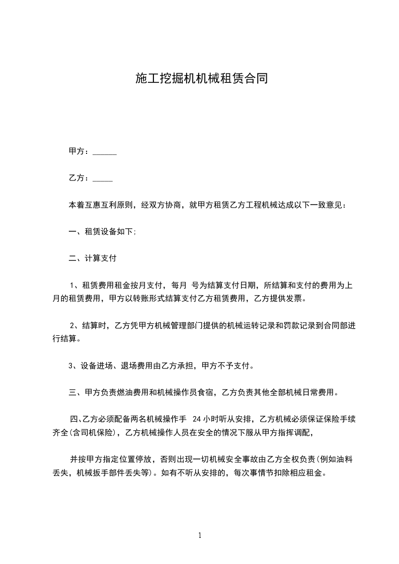 2、甲方只负责乙方机械的燃油费用,其他各种费用由乙方自己承担;