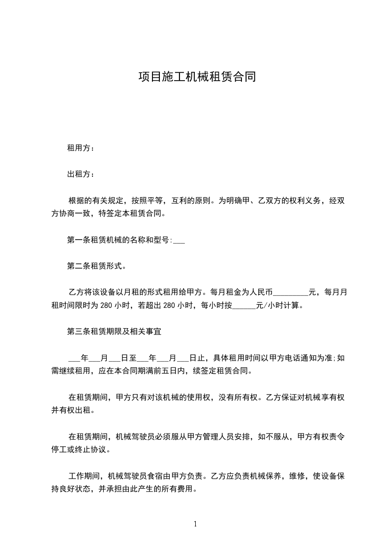 7、甲方根据工程进展和需要,有权决定机械租赁期限、终止或续签本本合同,但必须提前三天通知对方;