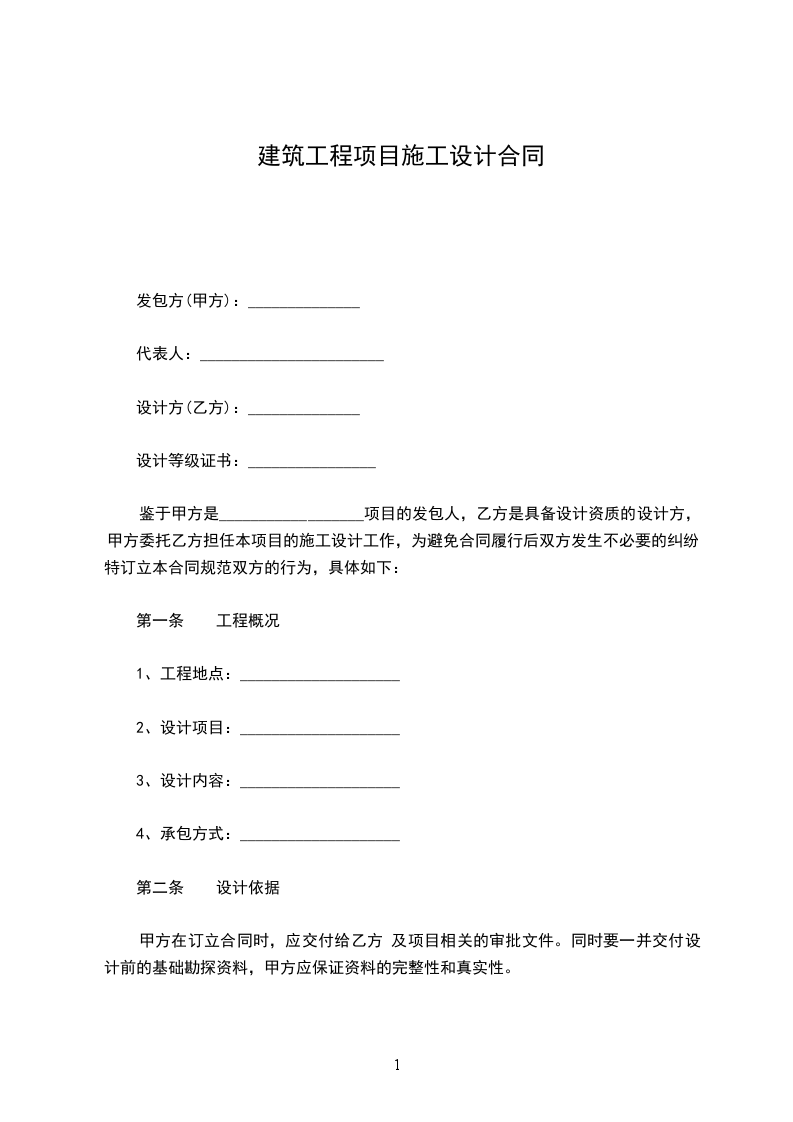 鉴于甲方是__________________项目的发包人,乙方是具备设计资质的设计方,甲方委托乙方担任本项目的施工设计工作,为避免合同履行后双方发生不必要的纠纷,特订立本合同规范双方的行为,具体如下: