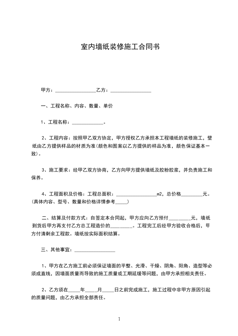 3、施工要求:经甲乙双方协商,乙方向甲方提供墙纸及胶粉胶浆,并负责施工和保养。