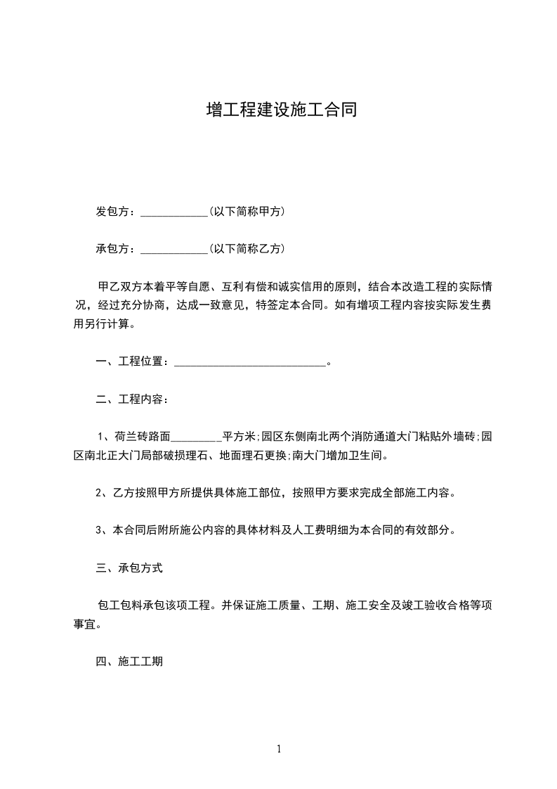 甲乙双方本着平等自愿、互利有偿和诚实信用的原则,结合本改造工程的实际情况,经过充分协商,达成一致意见,特签定本合同。如有增项工程内容按实际发生费用另行计算。