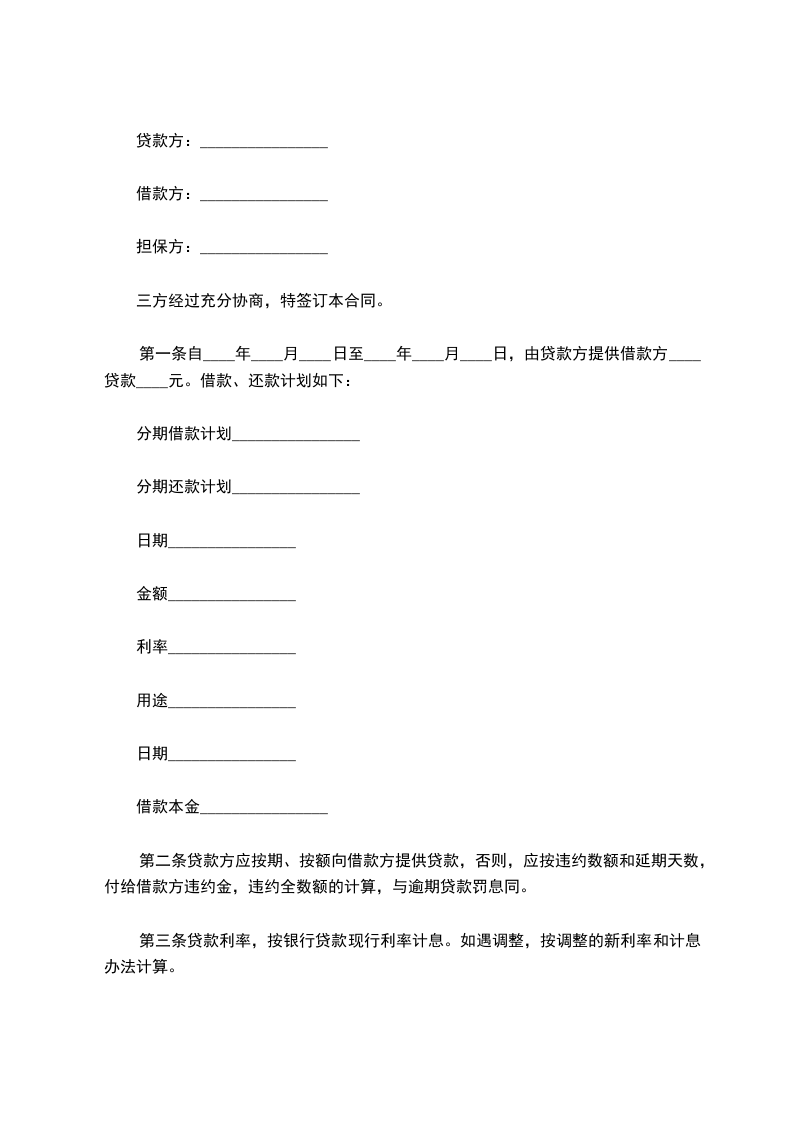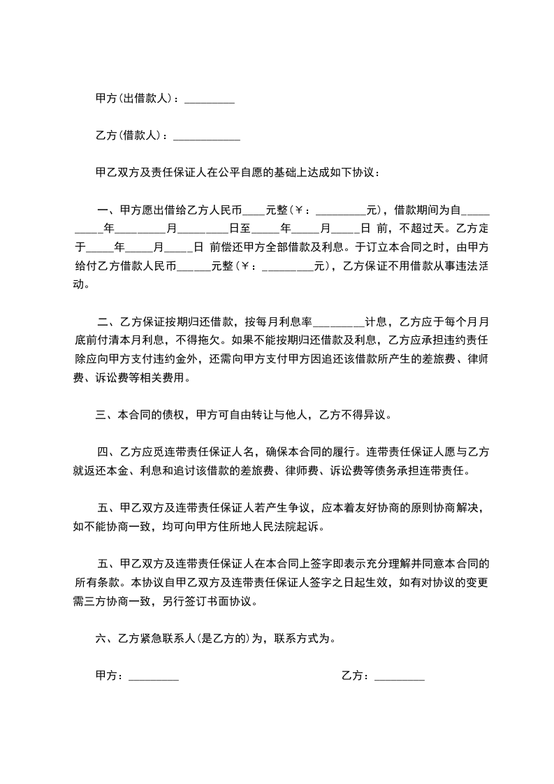 借款人(甲方):__________ 贷款人(乙方):_____