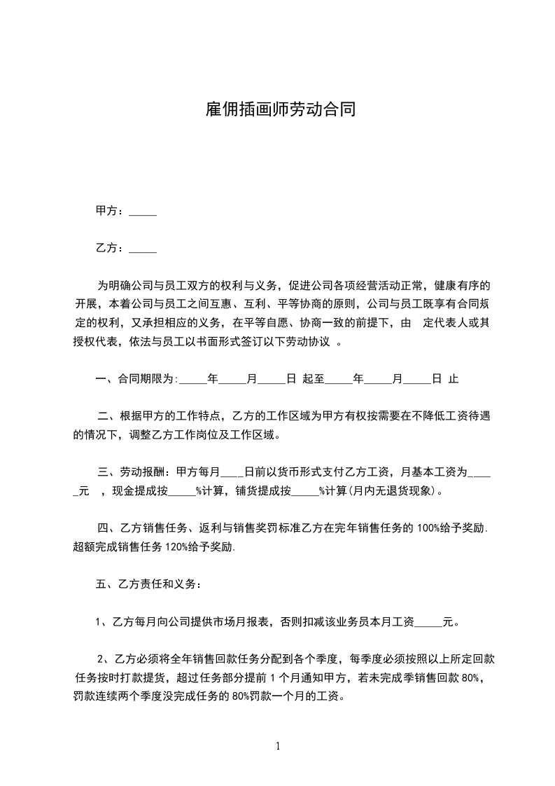 三、劳动报酬:甲方每月____日前以货币形式支付乙方工资,月基本工资为_____元 ,现金提成按_____%计算,铺货提成按_____%计算(月内无退货现象)。