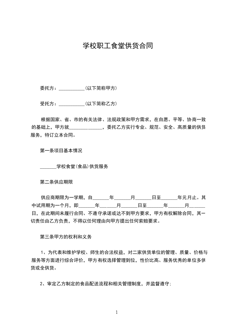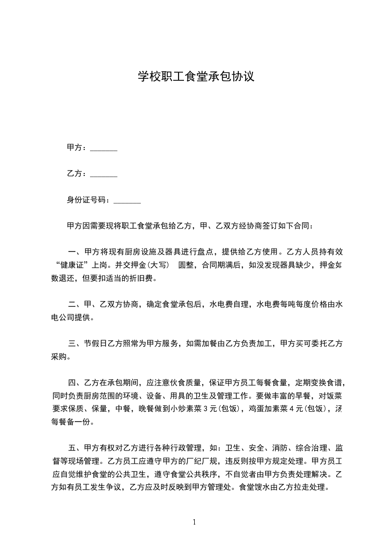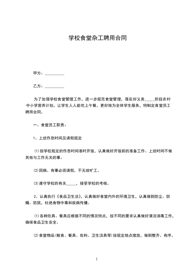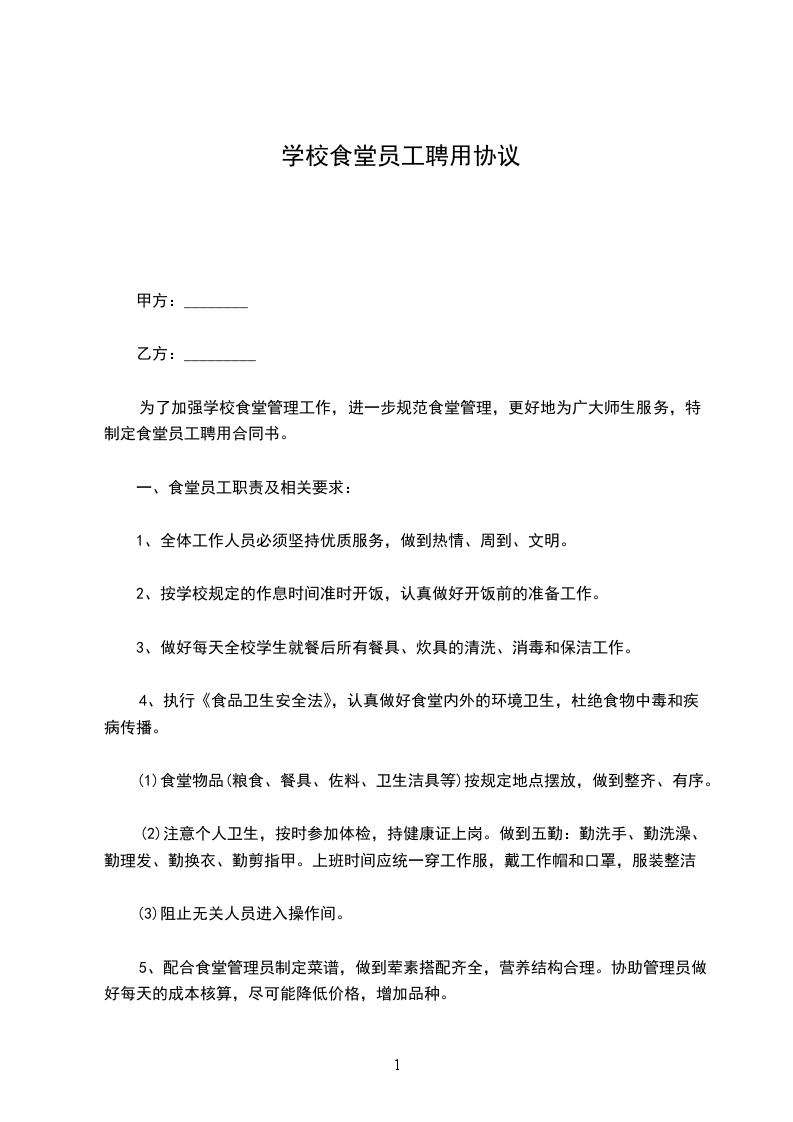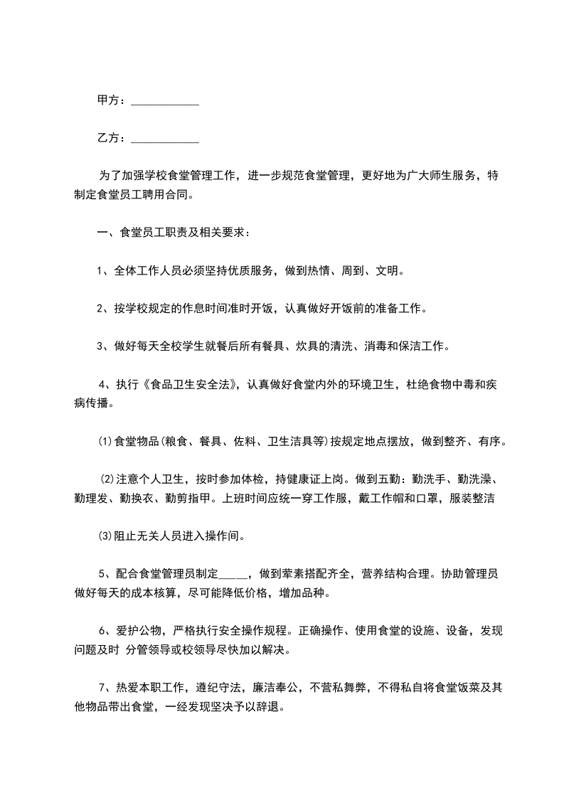 为了加强学校食堂管理工作,进一步规范食堂管理,更好地为广大师生服务,特制定食堂员工聘用合同。