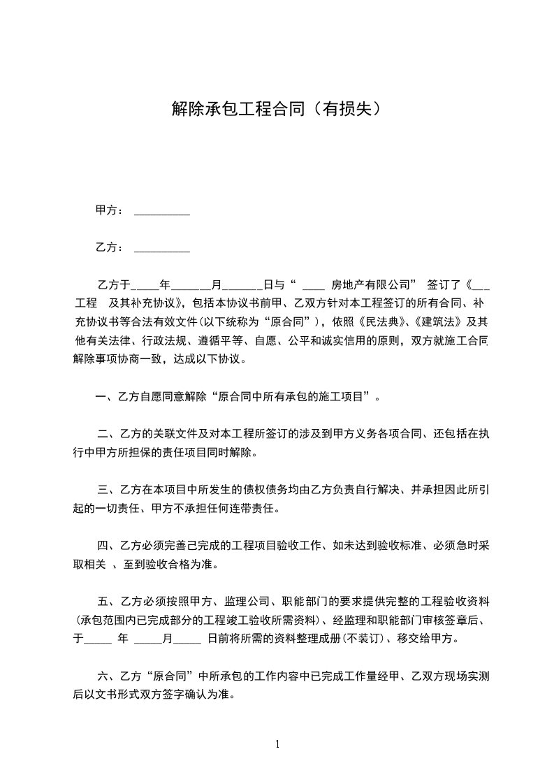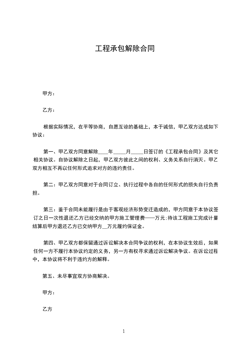 一、乙方自愿同意解除“原合同中所有承包的施工项目”。