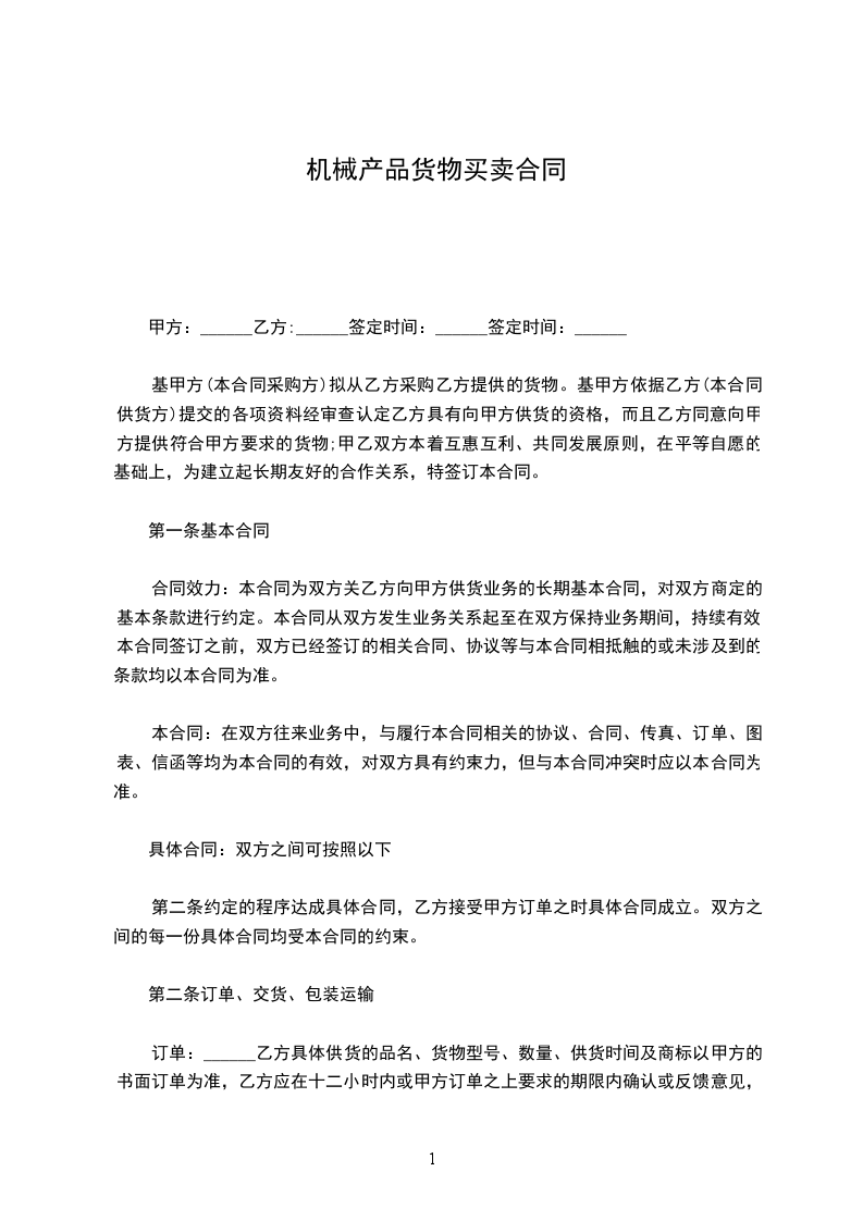 1、本合同设备的到货日期为:合同生效起__________个工作日内。