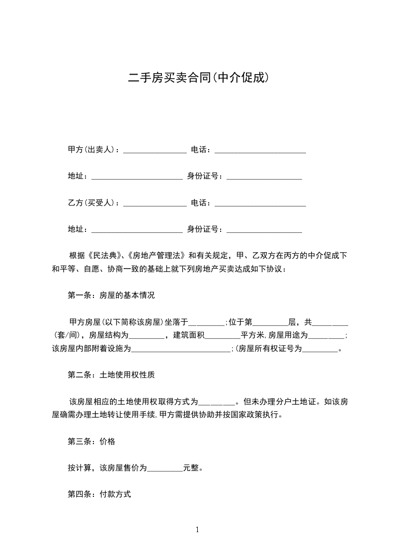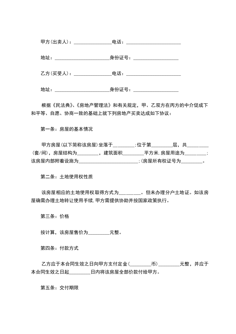 根据《民法典》、《房地产管理法》和有关规定,甲、乙双方在丙方的中介促成下和平等、自愿、协商一致的基础上就下列房地产买卖达成如下协议: