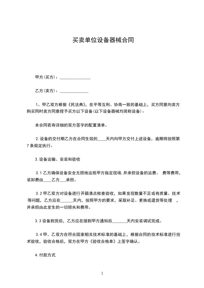1、甲乙双方根据《民法典》,在平等互利、协商一致的基础上,买方同意向卖方购买同时卖方同意授予买方以下设备(以下设备器械均简称设备):