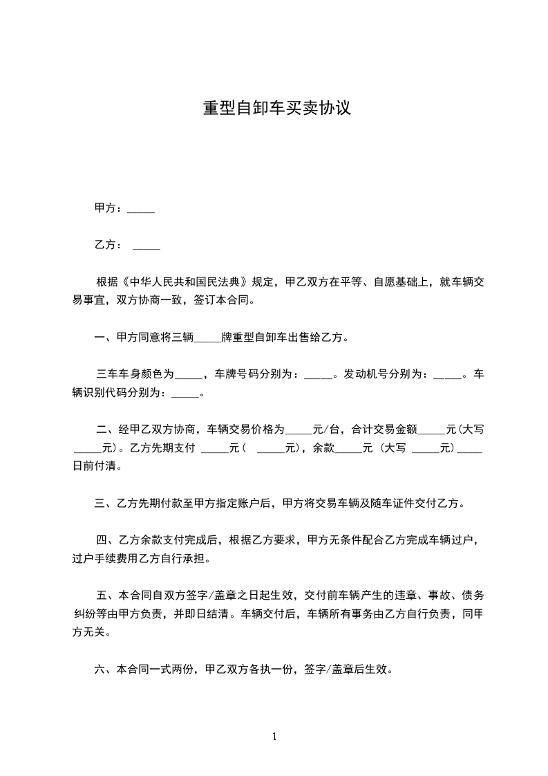 一、甲方同意将三辆_____牌重型自卸车出售给乙方。