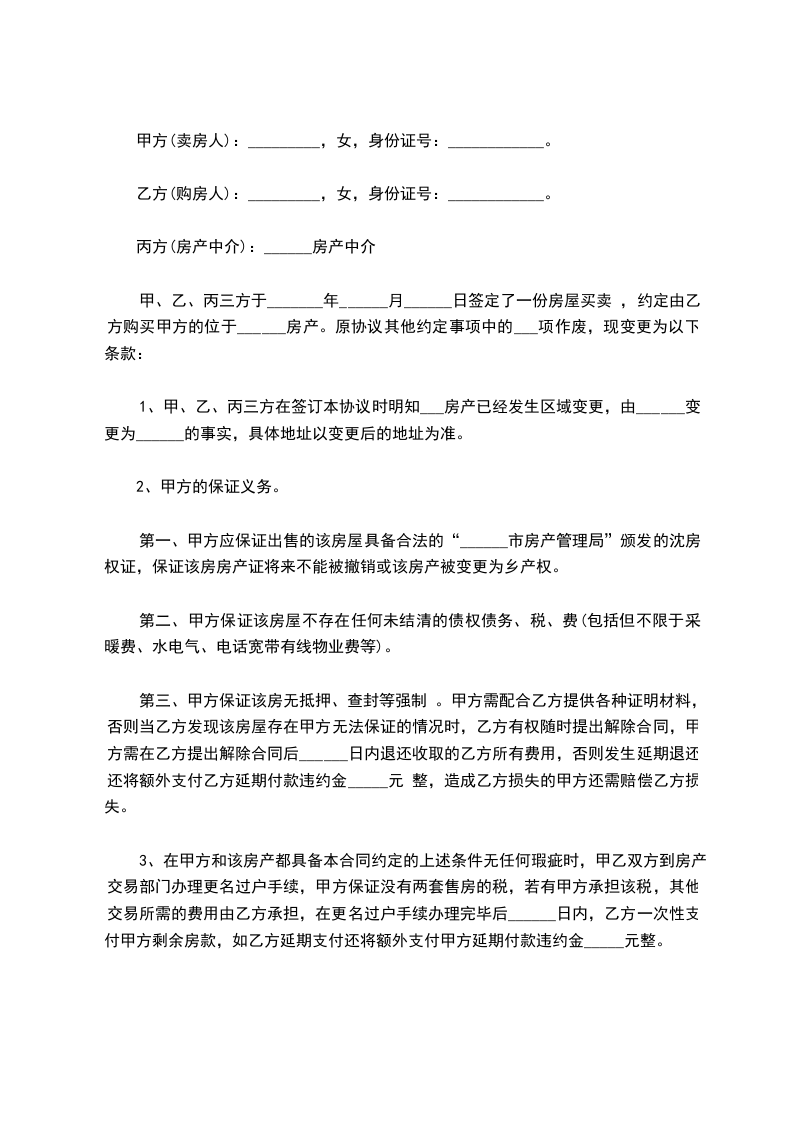 1、甲、乙、丙三方在签订本协议时明知___房产已经发生区域变更,由______变更为______的事实,具体地址以变更后的地址为准。