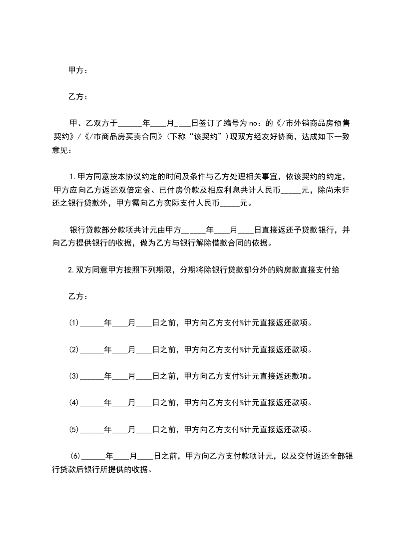 第十四条:合同生效后,任何一方未能履行本合同规定的条款,另一方有权提前解除本合同,所造成的损失由责任一方承担。