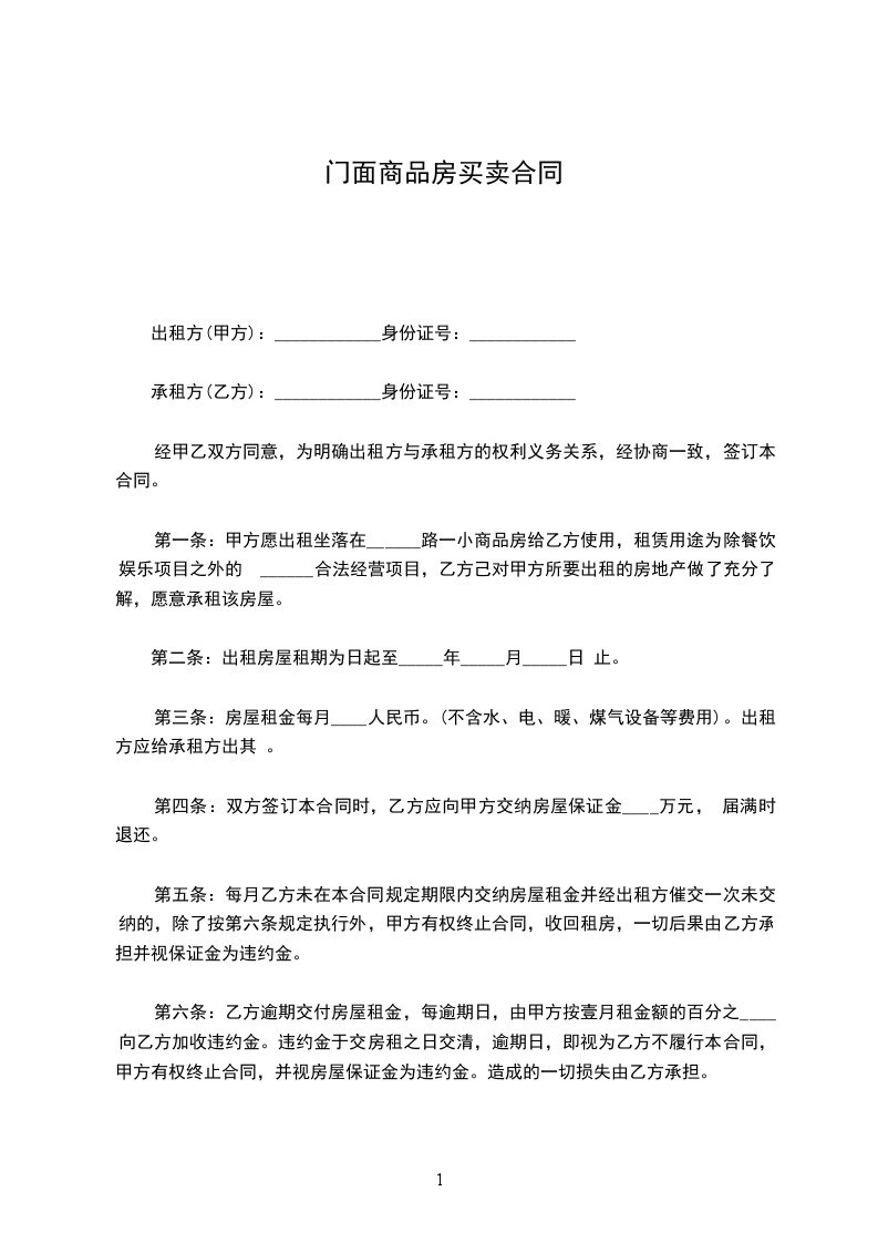 第一条:甲方愿出租坐落在______路一小商品房给乙方使用,租赁用途为除餐饮娱乐项目之外的 ______合法经营项目,乙方己对甲方所要出租的房地产做了充分了解,愿意承租该房屋。