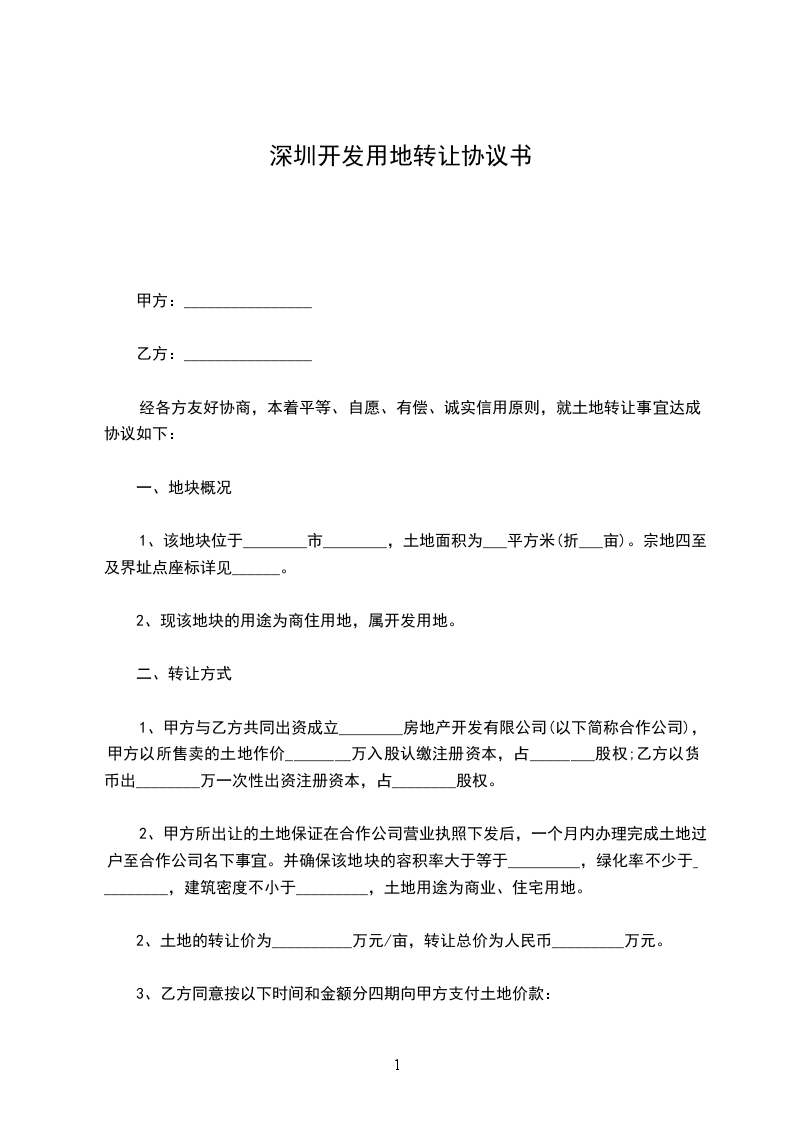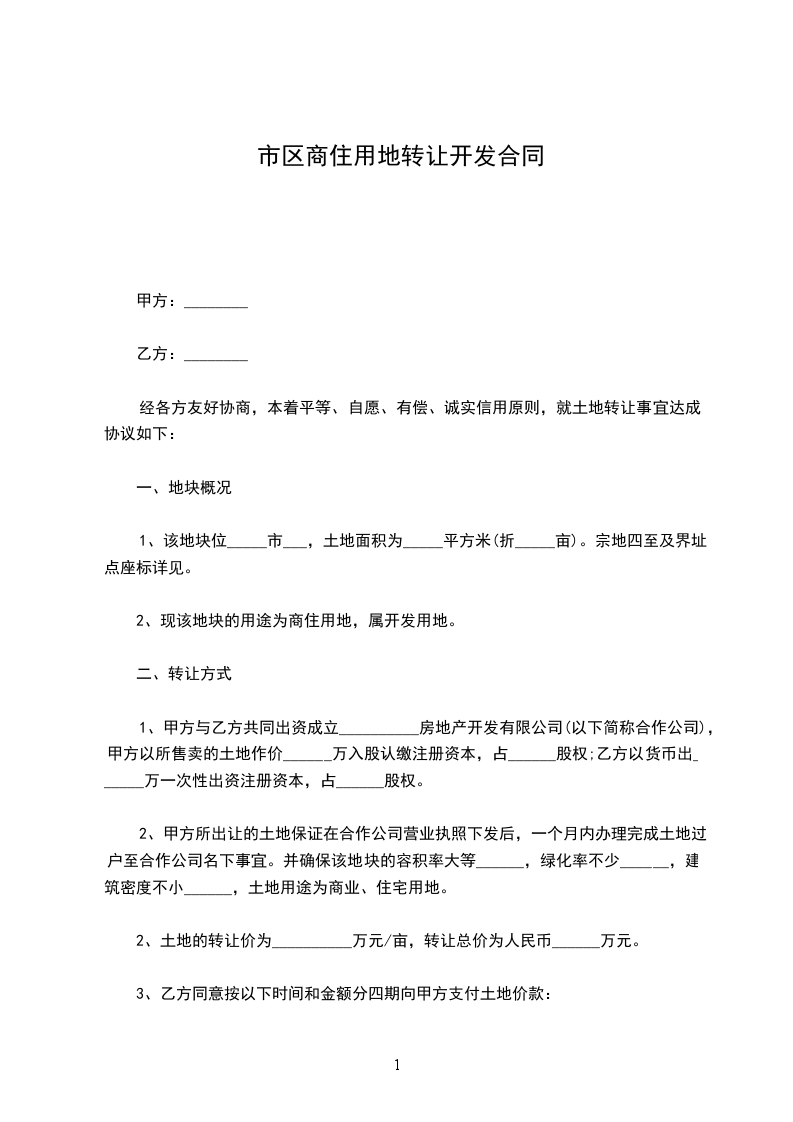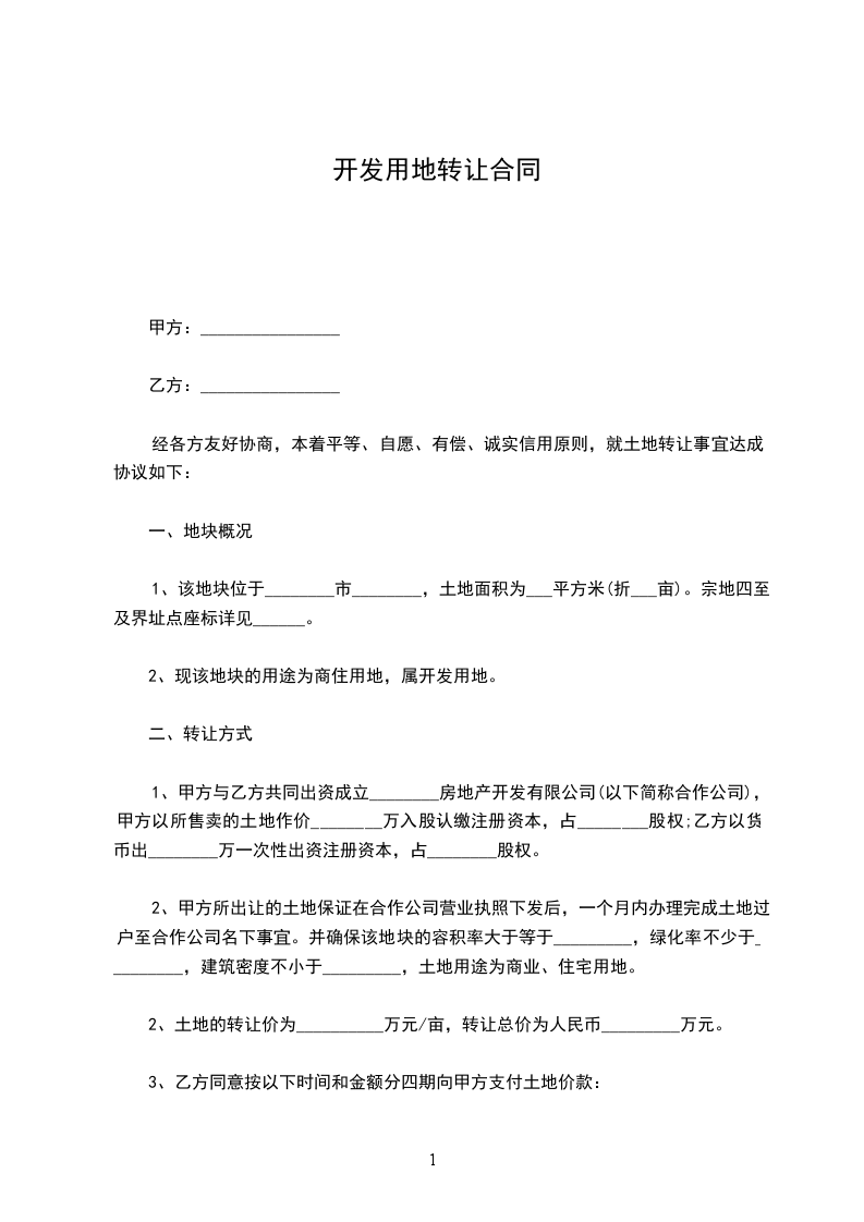 2、甲方所出让的土地保证在合作公司营业执照下发后,一个月内办理完成土地过户至合作公司名下事宜。并确保该地块的容积率大于等于_________,绿化率不少于_________,建筑密度不小于_________,土地用途为商业、住宅用地。