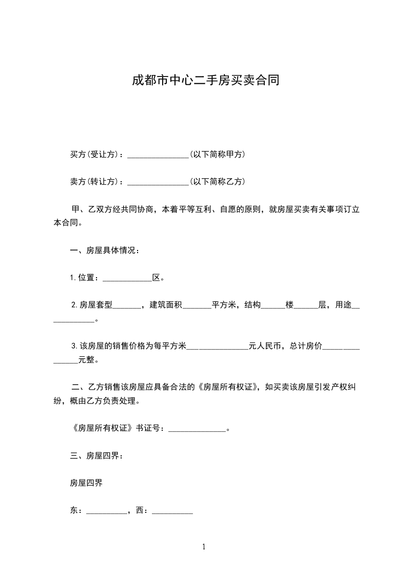 九、本协议一式份,甲方执存_____份,乙方执存一份,成都市房地产交易中心执存份。
