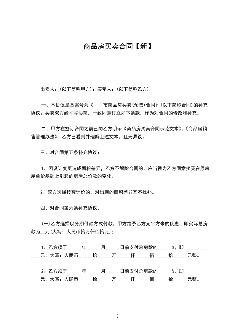 本合同签定之日,乙方第一次付给甲方购房定金人民币______________元整(_______元);