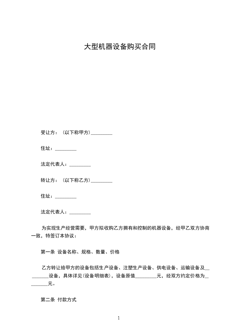 为实现生产经营需要,甲方拟收购乙方拥有和控制的机器设备,经甲乙双方协商一致,特签订本协议: