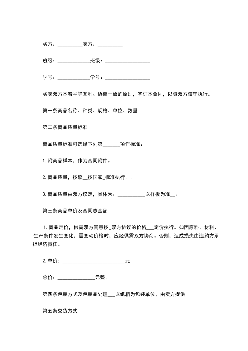 六、付款方式:支票(现票)或现金方式支付全额货款。