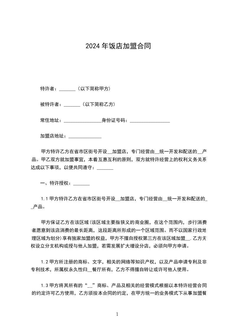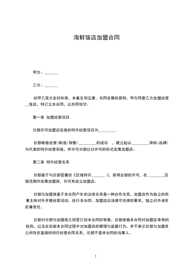 经甲乙双方友好协商,本着互利互惠、共同发展的原则,甲方同意乙方加盟经营__饭店,特订立本合同,以共同信守。
