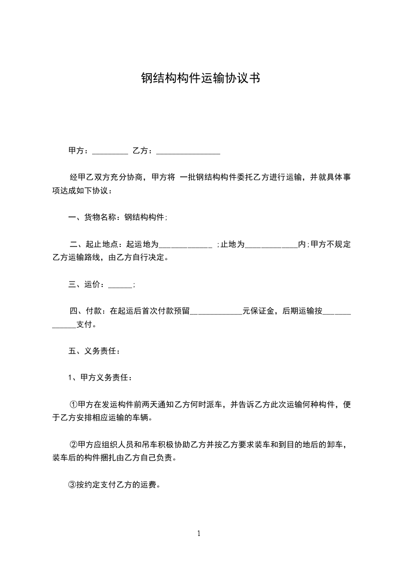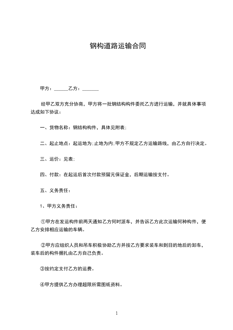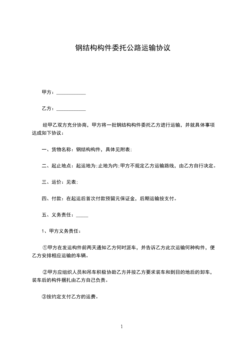 ①乙方所派车辆应为合法、合规车辆,并提供本单位有效工商执照及道路运输许可证复印件。乙方对车辆进行保养,保证车辆运输状态良好、顺畅,确保运输途中自身及构件的安全。
