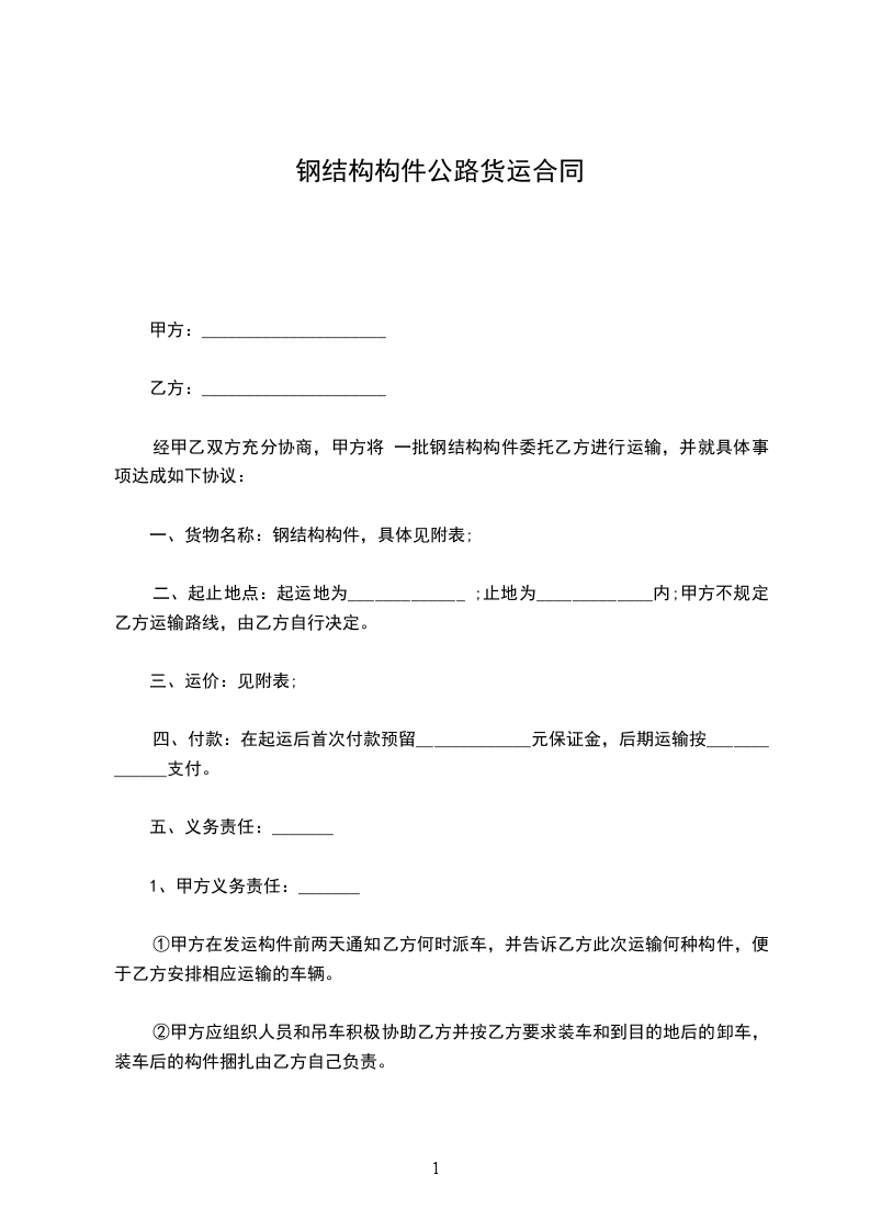 ②甲方应组织人员和吊车积极协助乙方并按乙方要求装车和到目的地后的卸车,装车后的构件捆扎由乙方自己负责。
