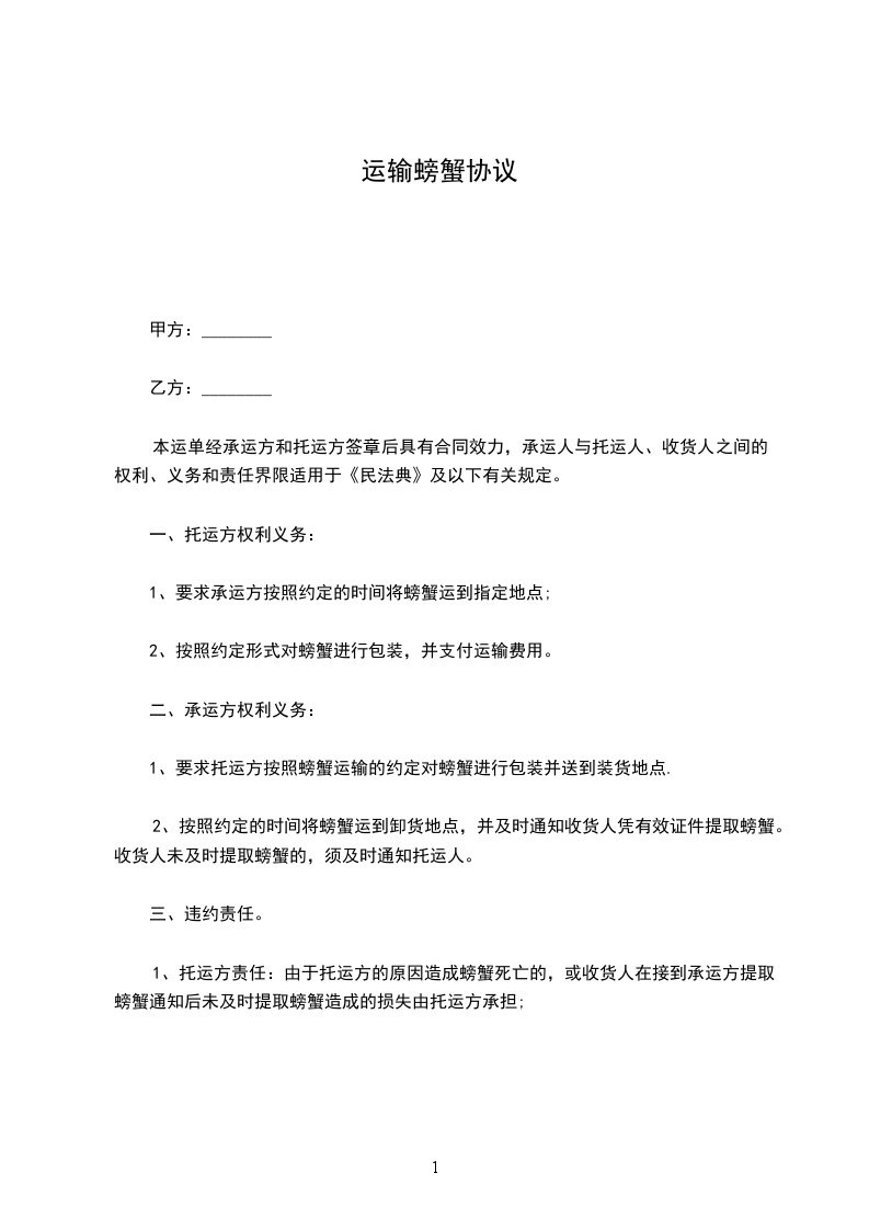 1、要求承运方按照约定的时间将螃蟹运到指定地点;
