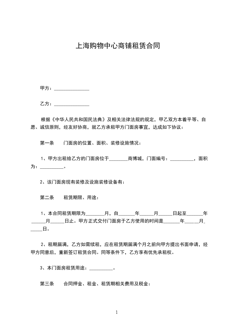 1、甲方出租给乙方的门面房位于________商博城,门面编号:__________,面积为:__________。