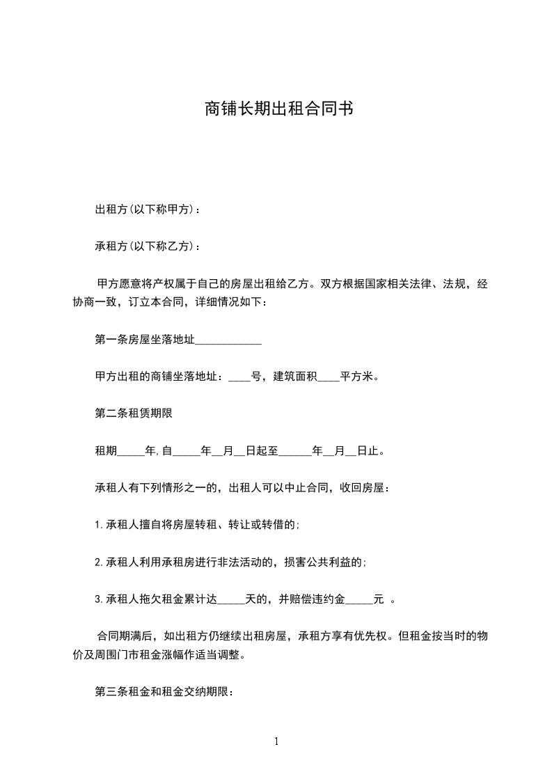 甲方出租的商铺坐落地址:____号,建筑面积____平方米。
