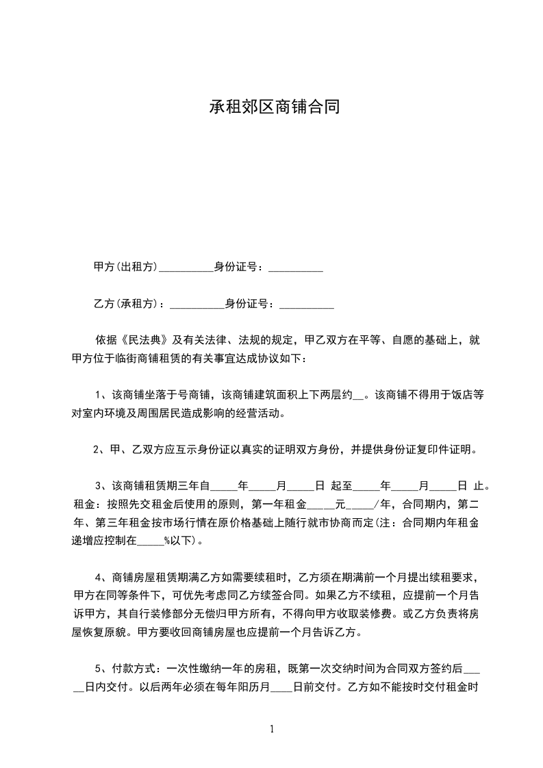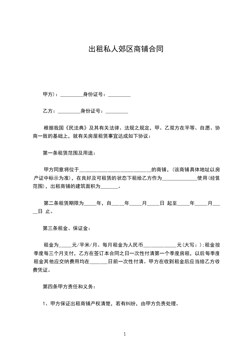 乙方(承租方):__________身份证号:__________