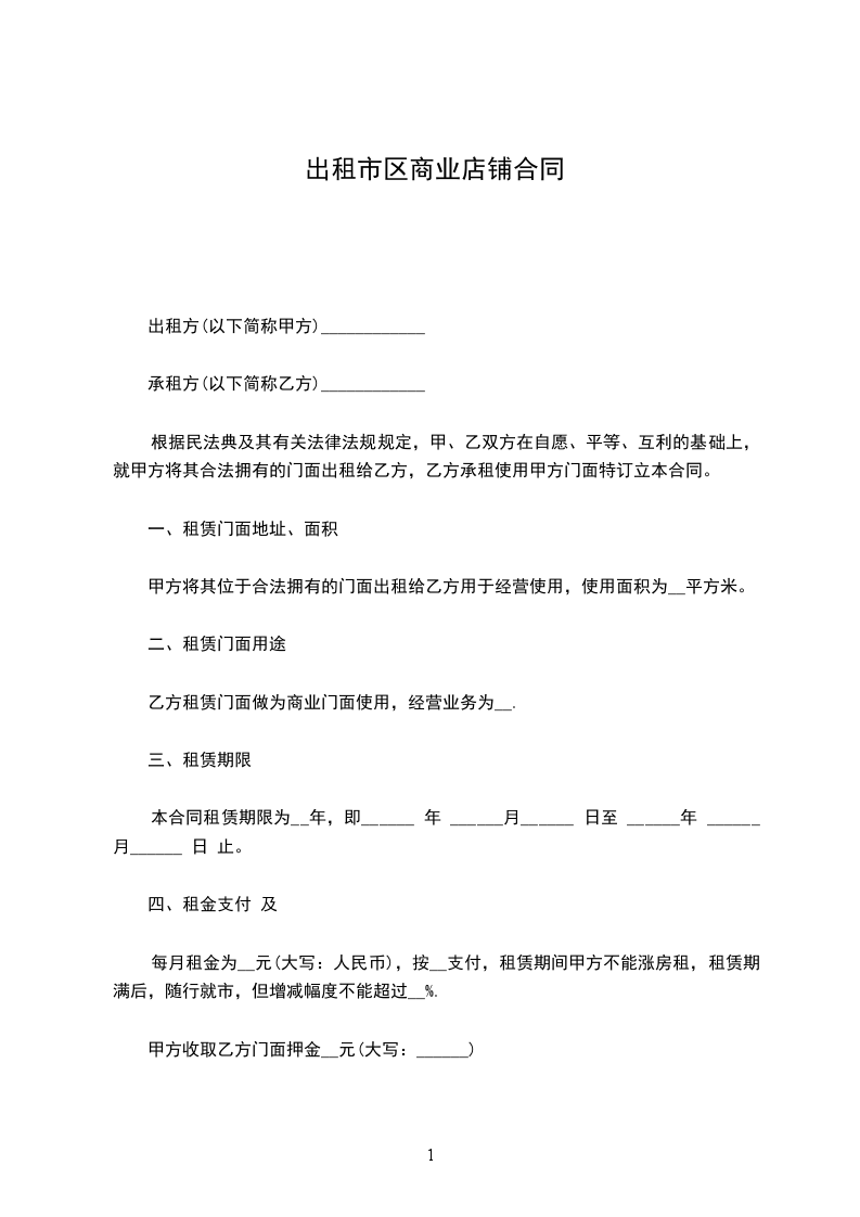 根据民法典及其有关法律法规规定,甲、乙双方在自愿、平等、互利的基础上,就甲方将其合法拥有的门面出租给乙方,乙方承租使用甲方门面特订立本合同。