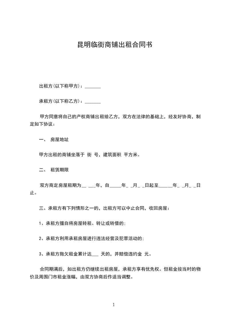 1、合同期满后,如乙方继续租赁房屋,须于期满前____日向甲方提出请求,由双方另行协商并签订合同。