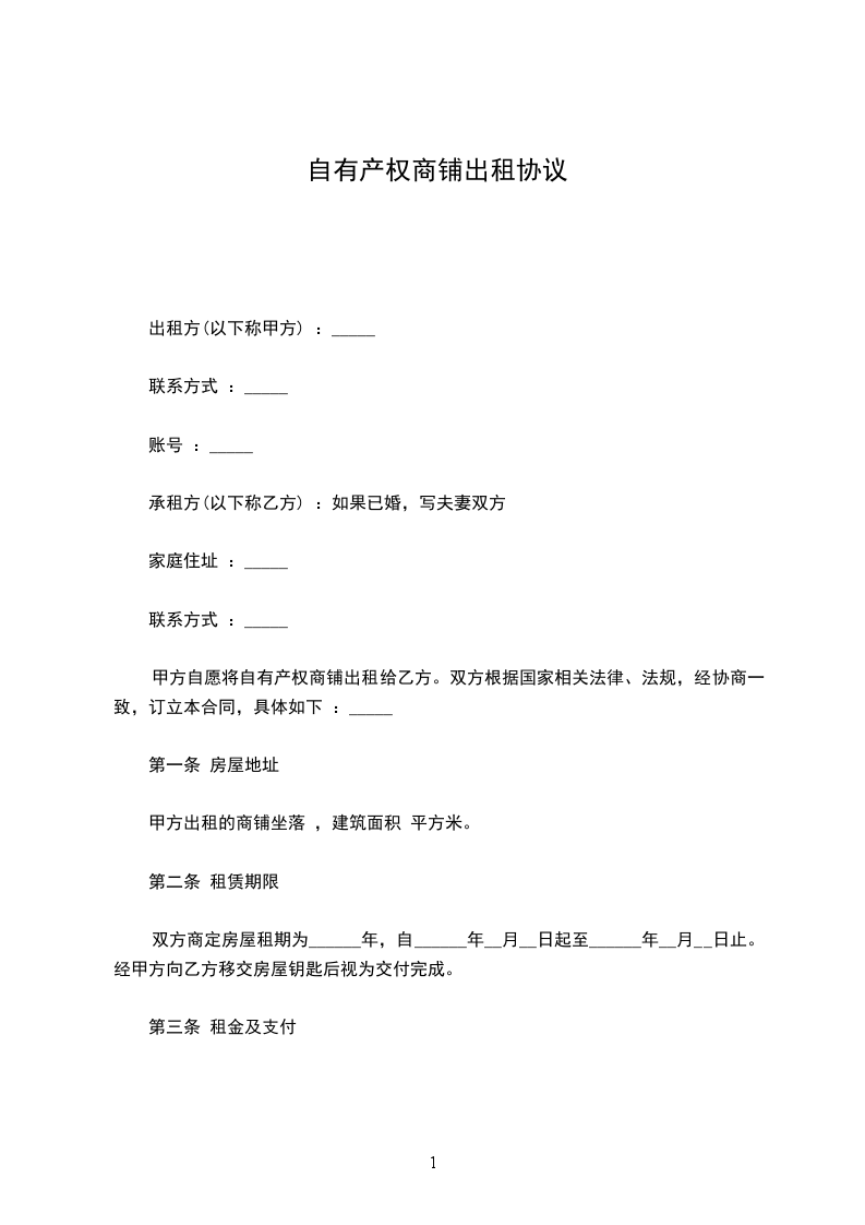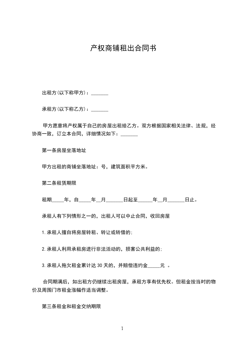 出租方(以下称甲方):____________