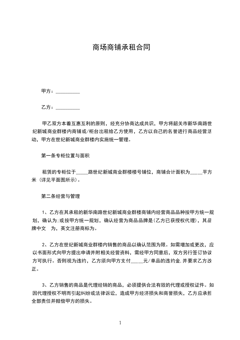 1、甲方保证出租商铺产权清楚,若有纠纷,由甲方负责处理。