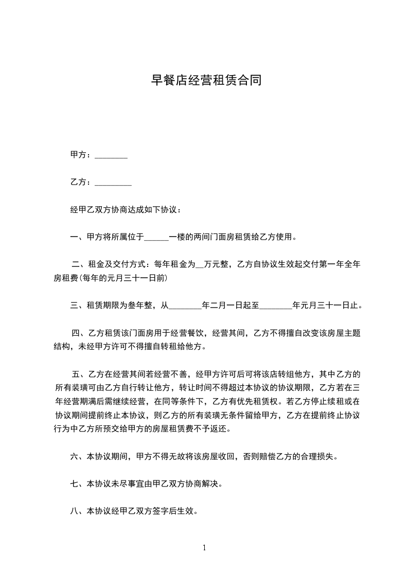 1.每年租金为为人民币_______元整(¥_______元)。