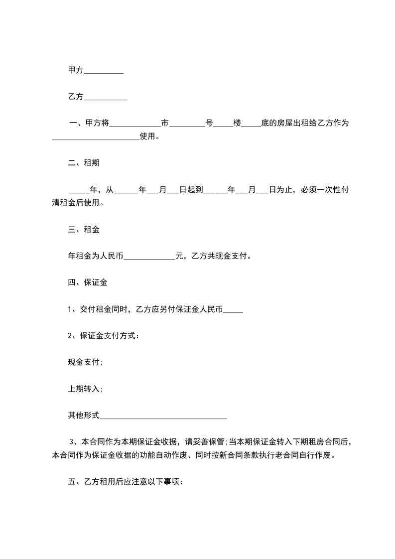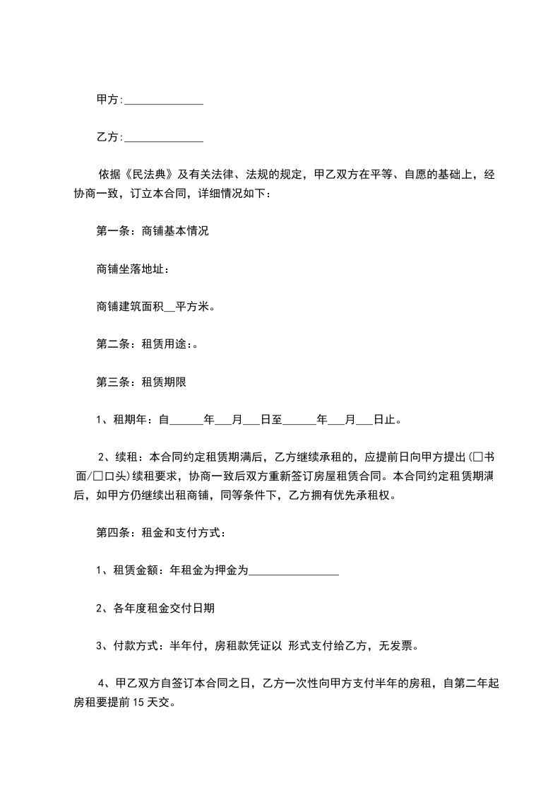 1、乙方在签订合同时须向甲方缴交店铺设施抵押金人民币_________元,押金不计息。