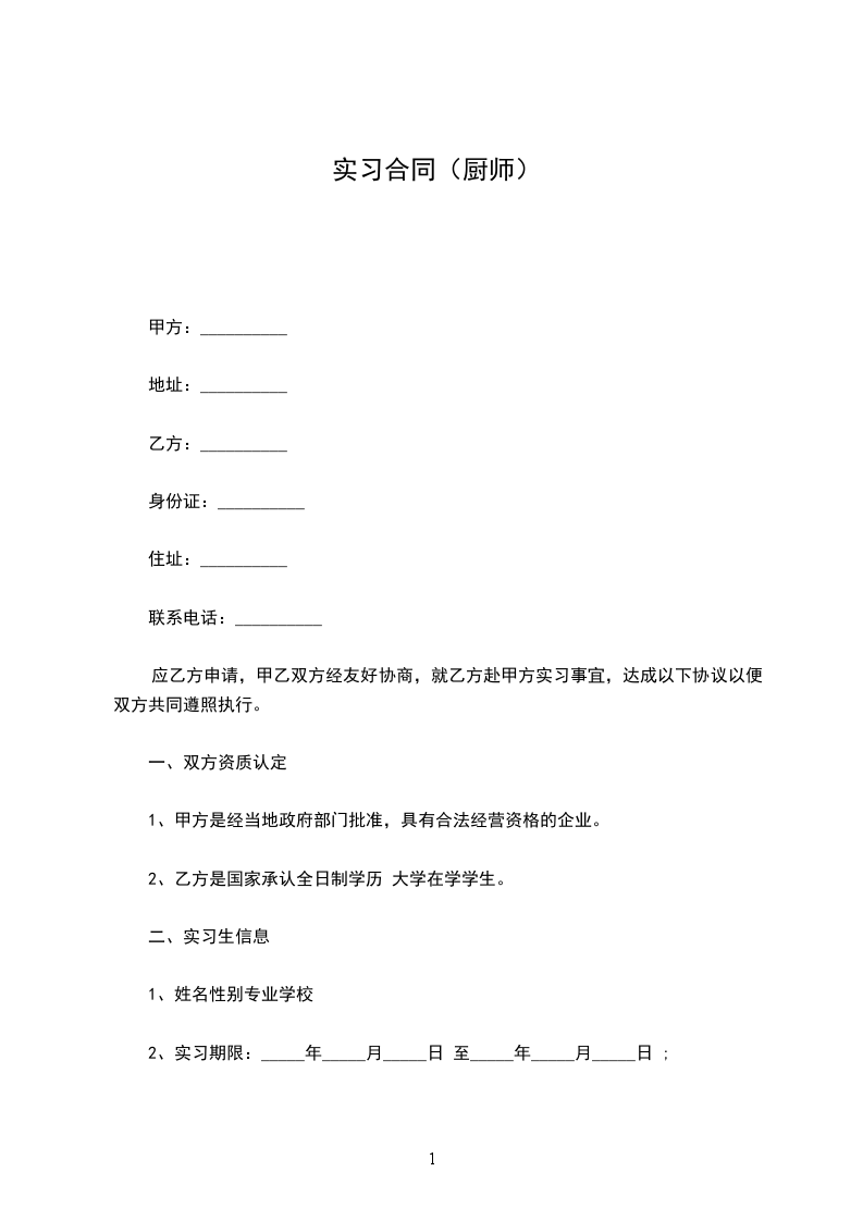 1、实习期间,甲方负责为乙方提供必要的技能培训和知识学习的机会,提供实习岗位。